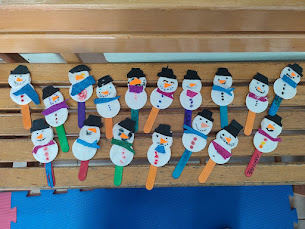 Από τα πρώτα αινίγματα ήταν ο χιονάνθρωπος, πρώτη κατασκευή λοιπόν χιονανθρωπάκια σε ξυλάκι και όπως βλέπετε τα πήγαμε περίφημα. Όλα διαφορετικά και μοναδικά!