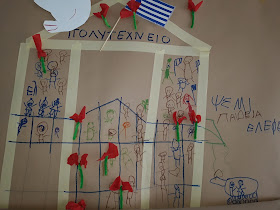 Μάθαμε, τραγουδήσαμετο τραγούδι 'Ο δρόμος", ενώ διαβάσαμε και δραματοποιήσαμε το βιβλίο " Το Δάσος " της Ζαραμπούκα. Διαβάσαμε το βιβλίο " η κυρά Δημοκρατία" και συνδέσαμε γεγονότα και αξίες μεταξύ της επετείου της 17 Νοέμβρη και του βιβλίου. Επιλάξαμε το σύνθημα της κυρά Δημοκρατίας σαν το σύνθημα που μας εκφράζει. " Όλοι Μαζί Όλοι Μαζί Είμαστε Πάντα πιο Δυνατοί"